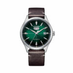 Green dial and black leather bracelet