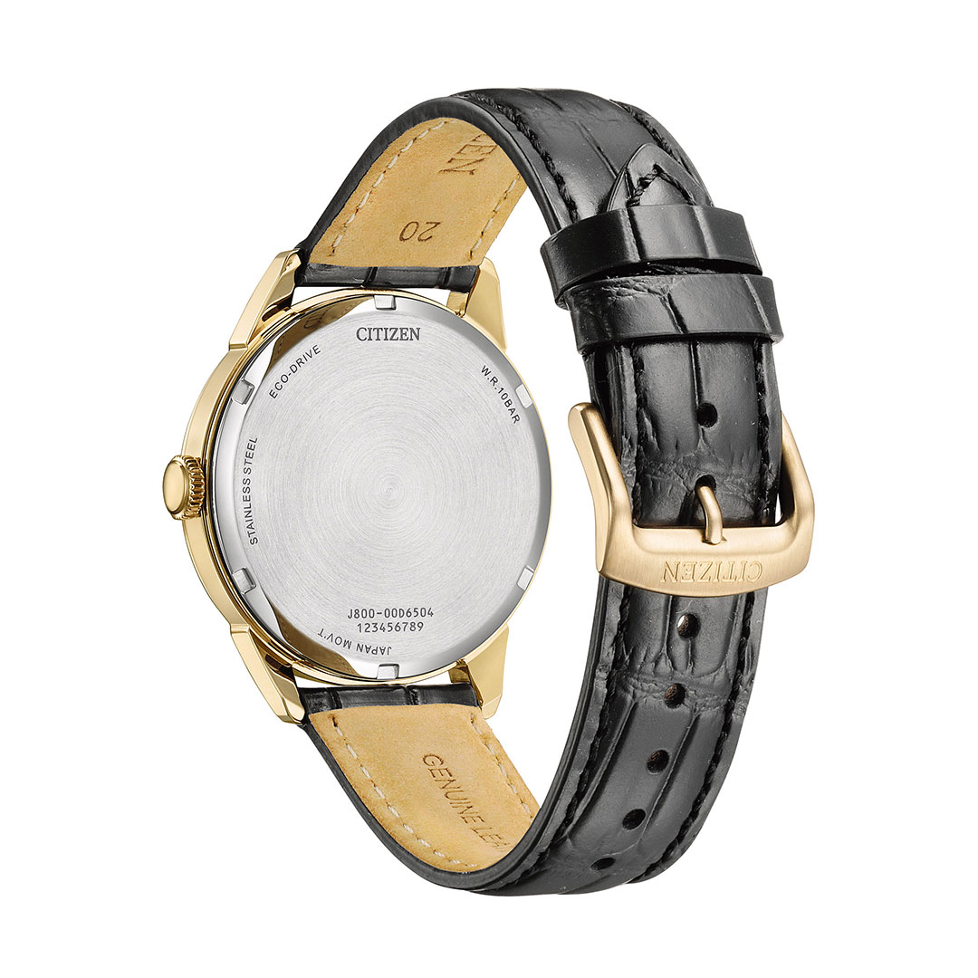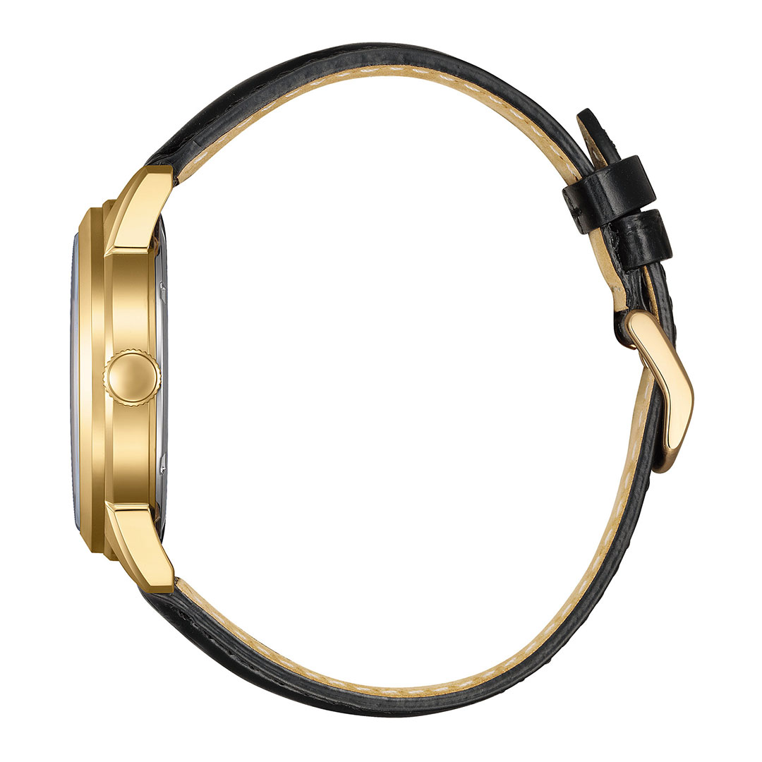 Gold dial and black leather strap